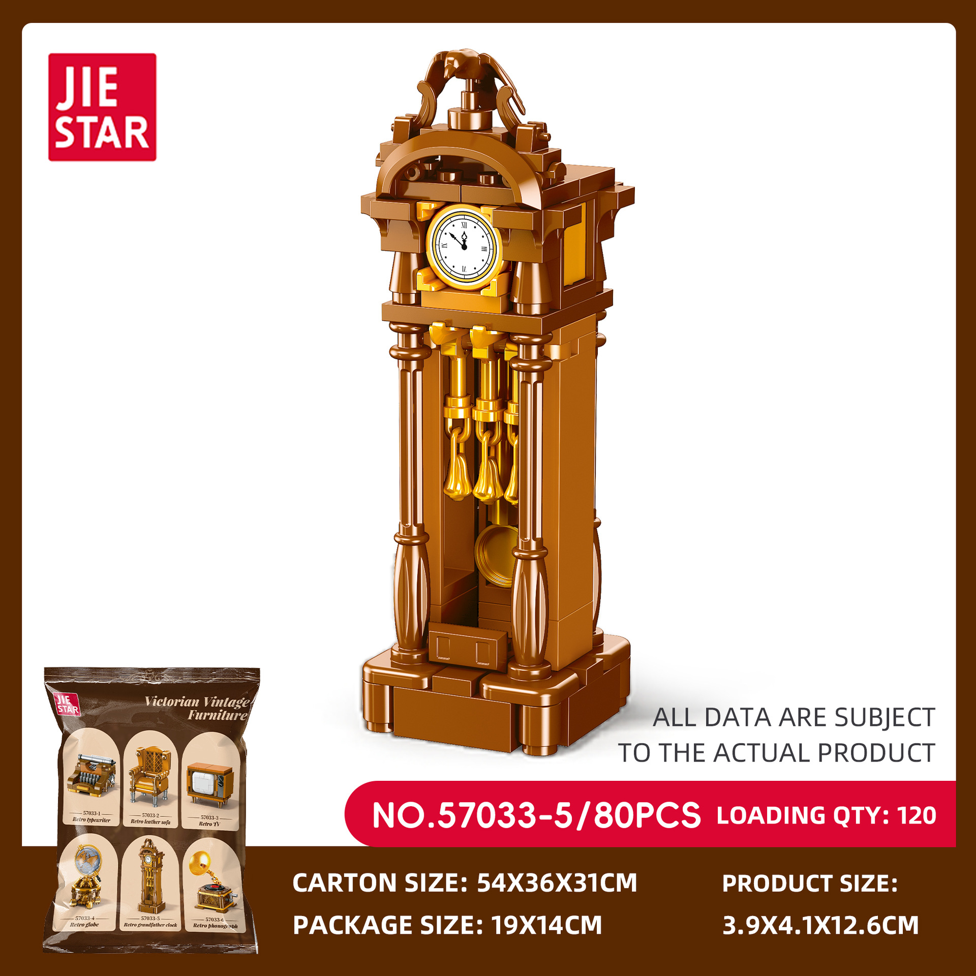 杰星57033-5 復古家具創意系列 時鐘 益智拼裝積木
