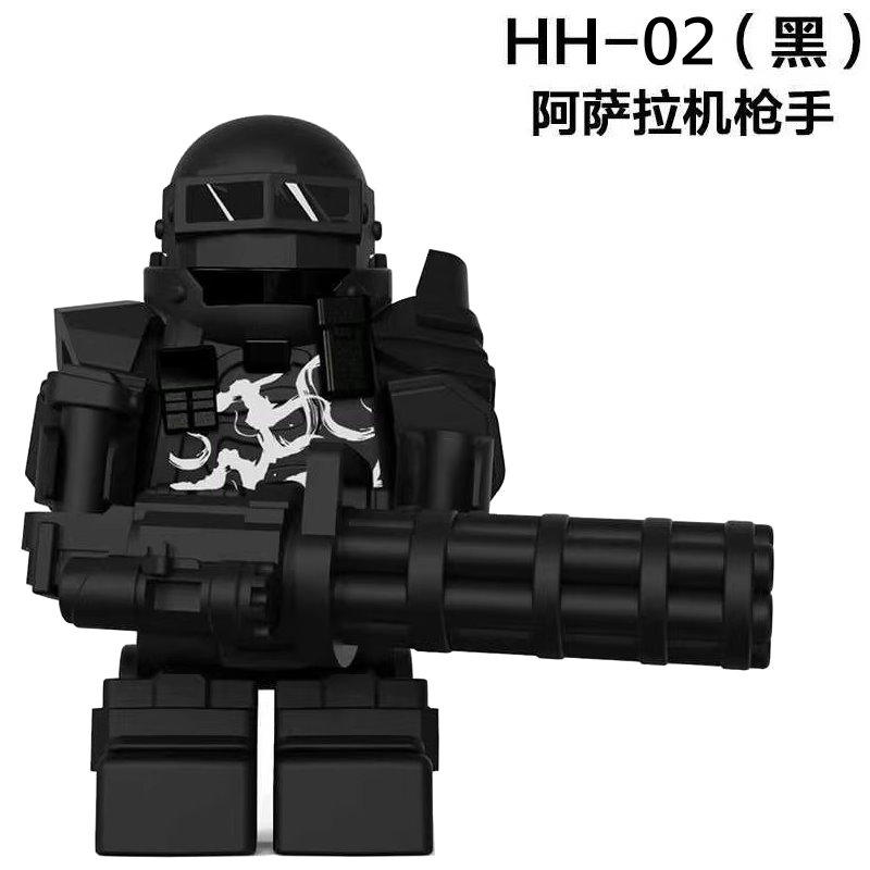 HH-02 第三方袋裝積木人偶 軍事系列 三角洲行動 特種兵阿薩拉機槍手(黑)