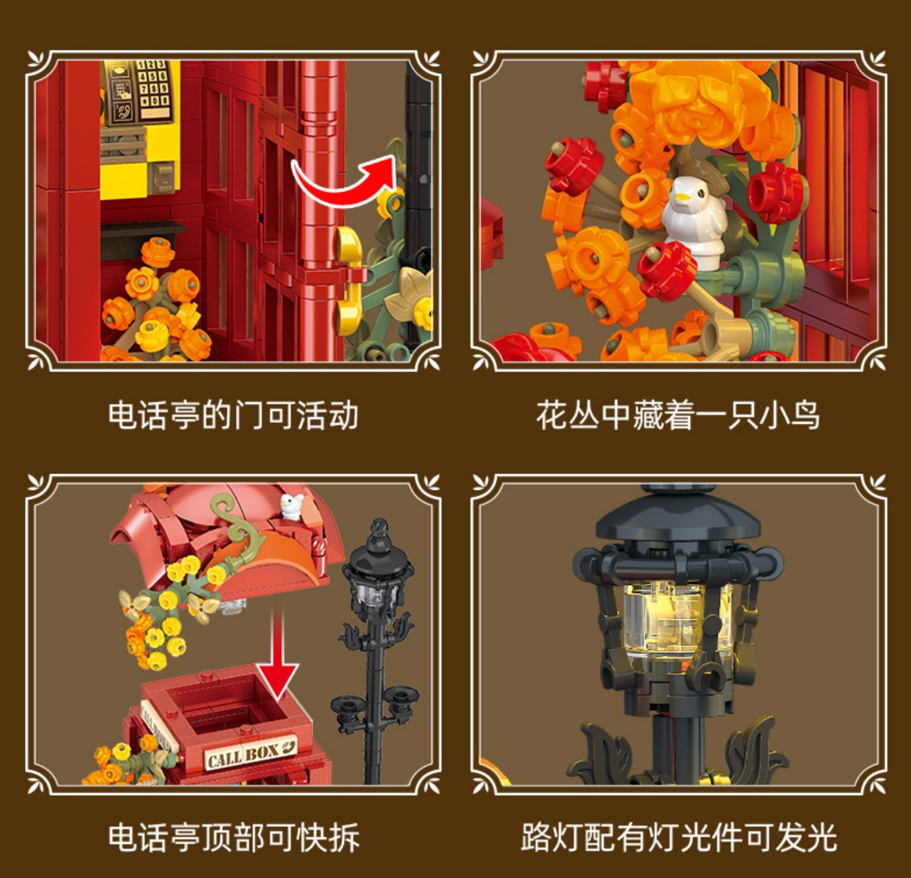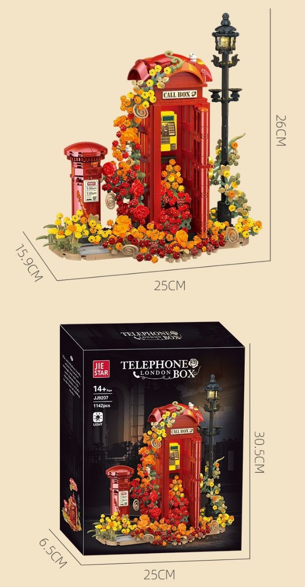 JJ9207 城市街景系列 燈光版 復古英倫紅色電話亭 復古電話亭 益智拼裝積木 可兼容樂高