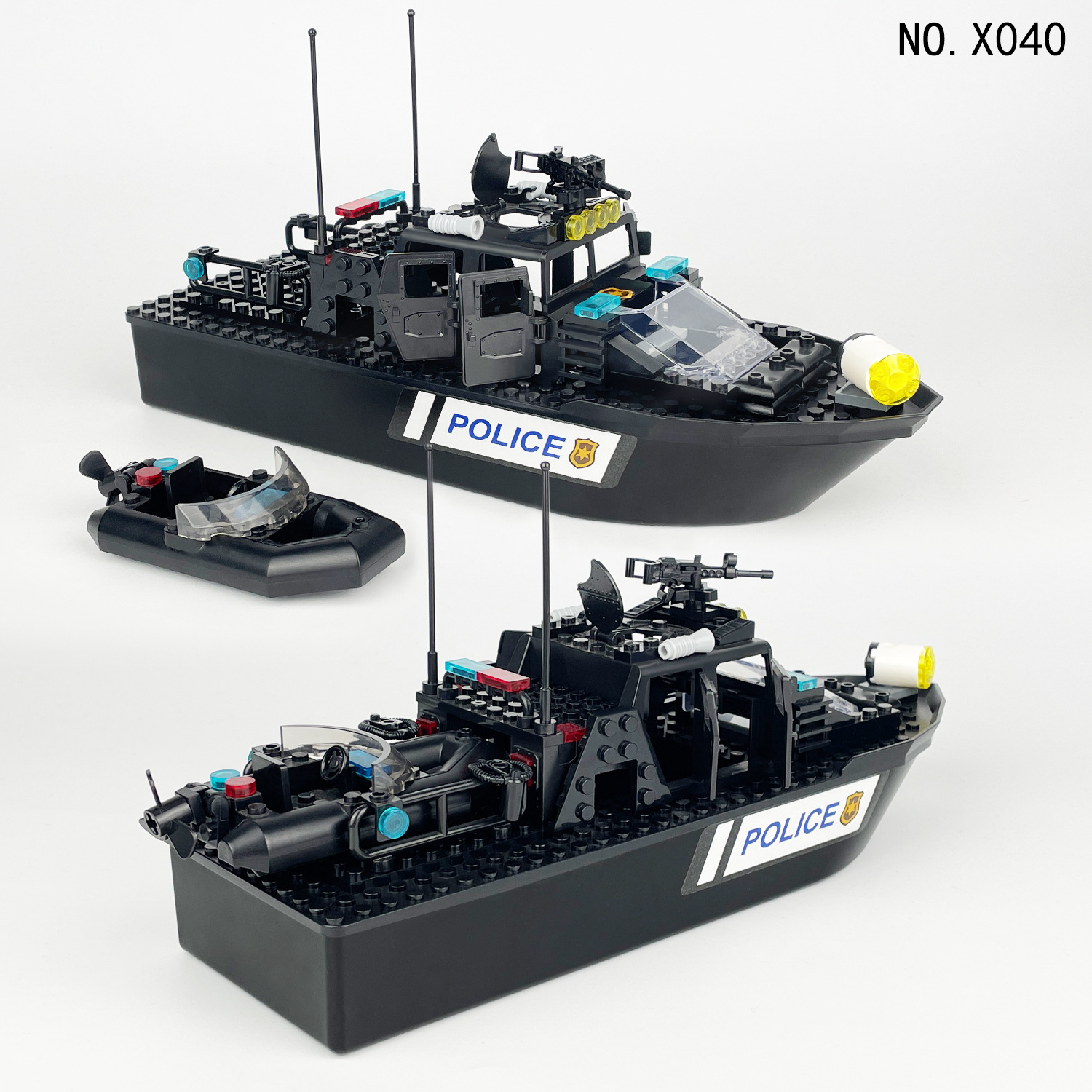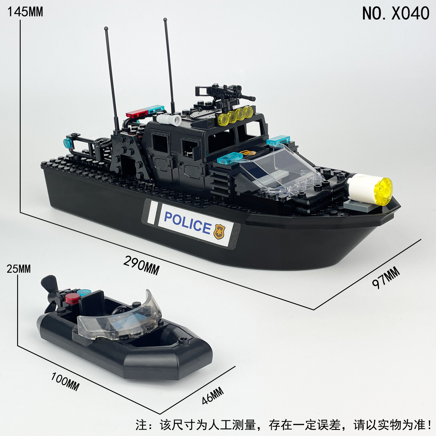 X040 袋裝積木 警察系列 海警巡邏艇配重機槍 戰斧艦船 拼裝積木 可兼容樂高