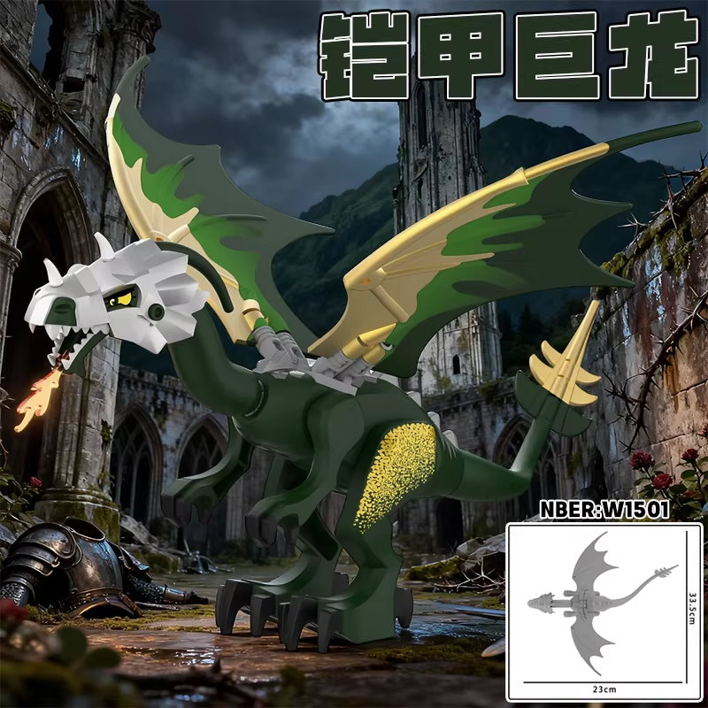 W1501 第三方袋裝積木人偶 中古世紀城堡騎士 龍與地下城 魔戒 鎧甲巨龍 綠色