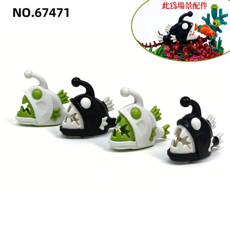 MOC-472 第三方袋裝積木 動物系列 67471 白綠安康魚 燈籠魚 海底海洋場景配件 兼容樂高