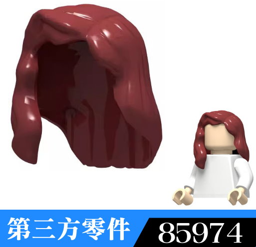 NO.85974 深紅 第三方積木零件 女生人偶頭髮 披肩中長髮 配件