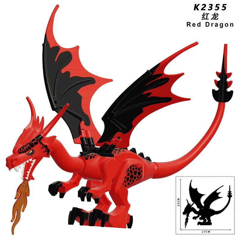 K2355 第三方袋裝積木人偶 中古世紀城堡騎士 龍與地下城 魔戒 紅龍