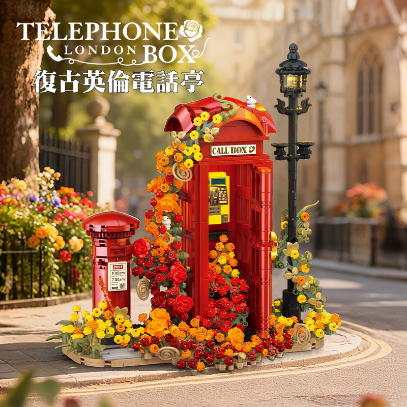 JJ9207 城市街景系列 燈光版 復古英倫紅色電話亭 復古電話亭 益智拼裝積木 可兼容樂高