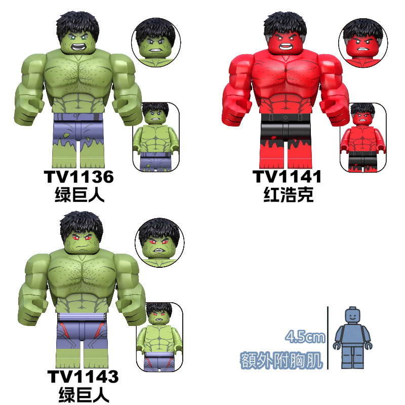 • TV1143 第三方袋裝積木人偶 漫威超級英雄系列 額外附胸肌的小人偶 紅眼綠巨人浩克