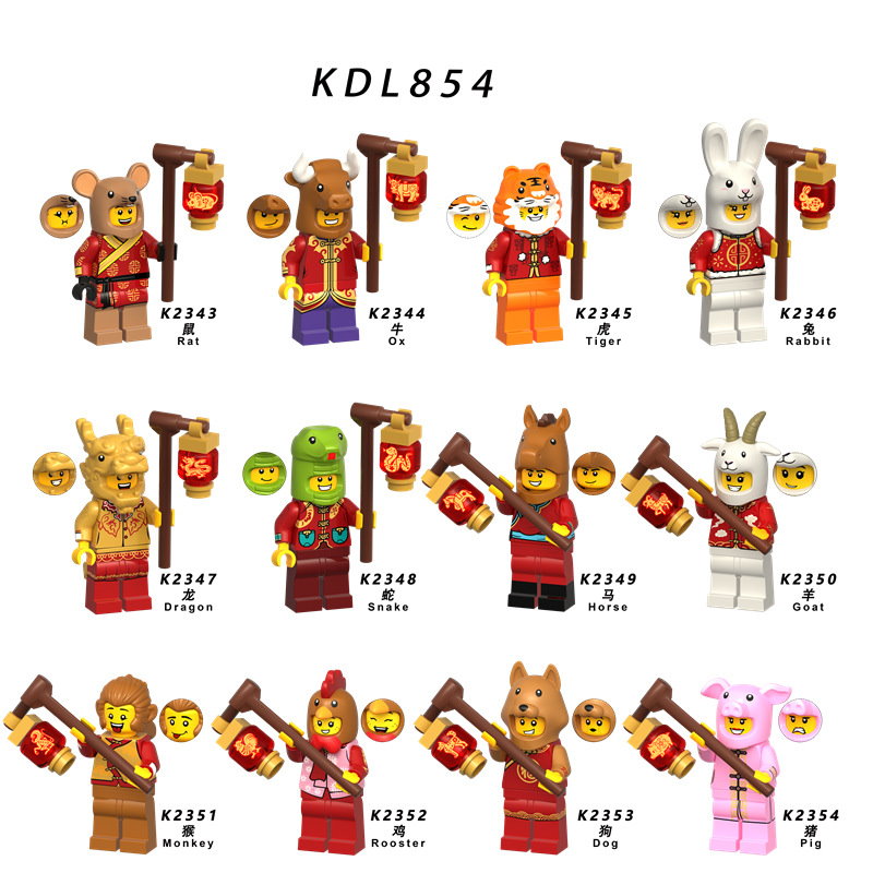 K2351 第三方袋裝積木人偶 新年系列 中國風卡通動物 十二生肖 猴