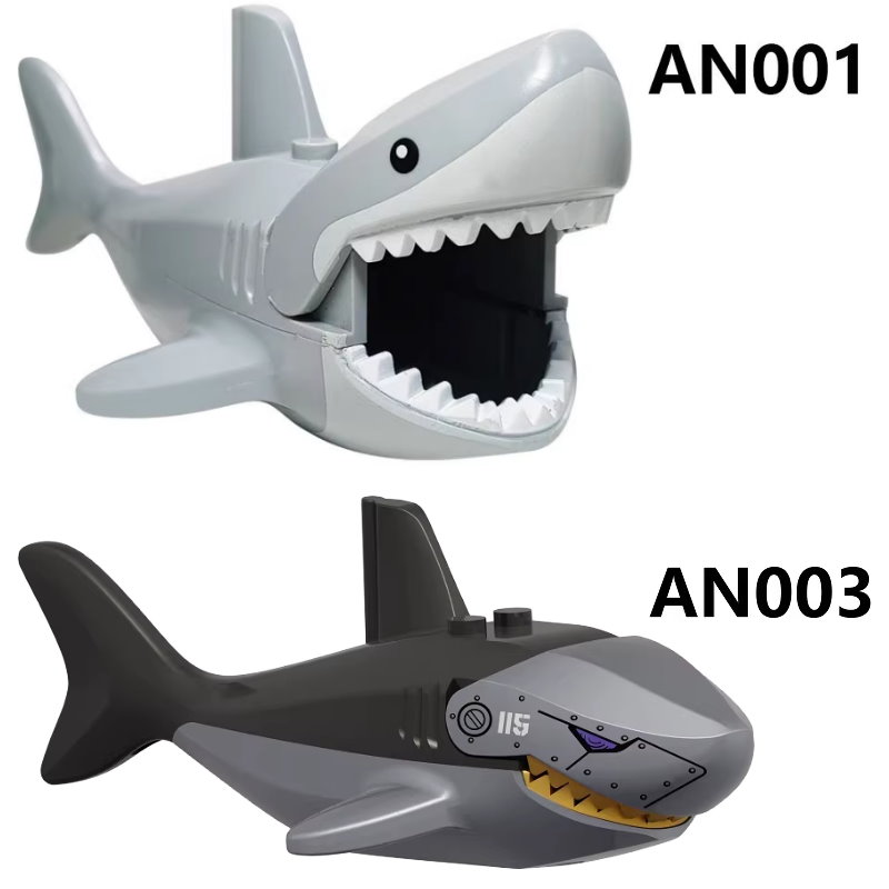 AN003 第三方袋裝積木人偶 動物系列 黑色鯊魚 超級特工機械大鯊魚 可兼容樂高