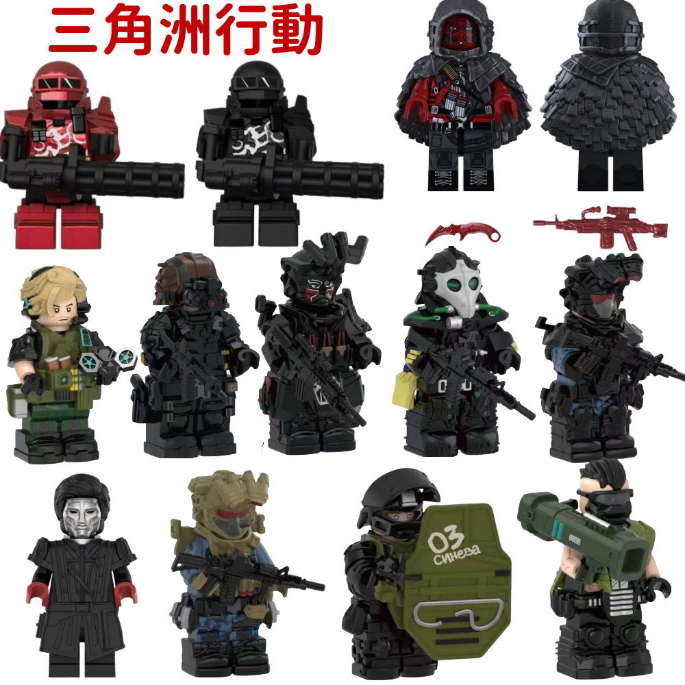 YZ00119B 第三方袋裝積木人偶 軍事系列 三角洲行動 危險物質 附黑色武器片