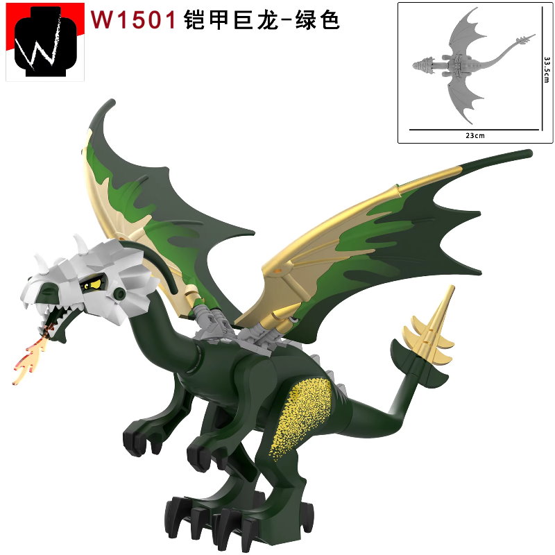 W1501 第三方袋裝積木人偶 中古世紀城堡騎士 龍與地下城 魔戒 鎧甲巨龍 綠色