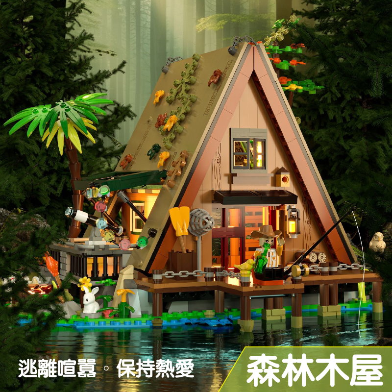 磚也6028 城市街景系列 附燈光 自然風情 森林木屋 露營 無法兼容樂高 拼裝積木