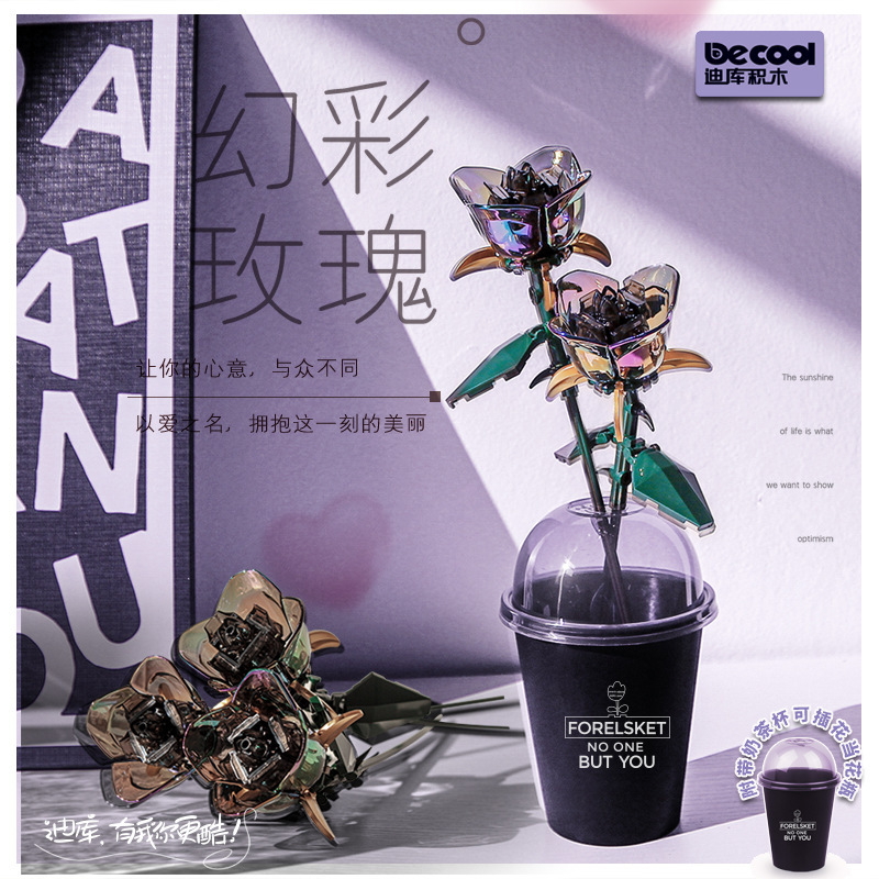 迪庫52034 仿真花束系列 幻彩玫瑰 精裝版 求婚 告白神器 愛情表白禮物 擺飾 積木