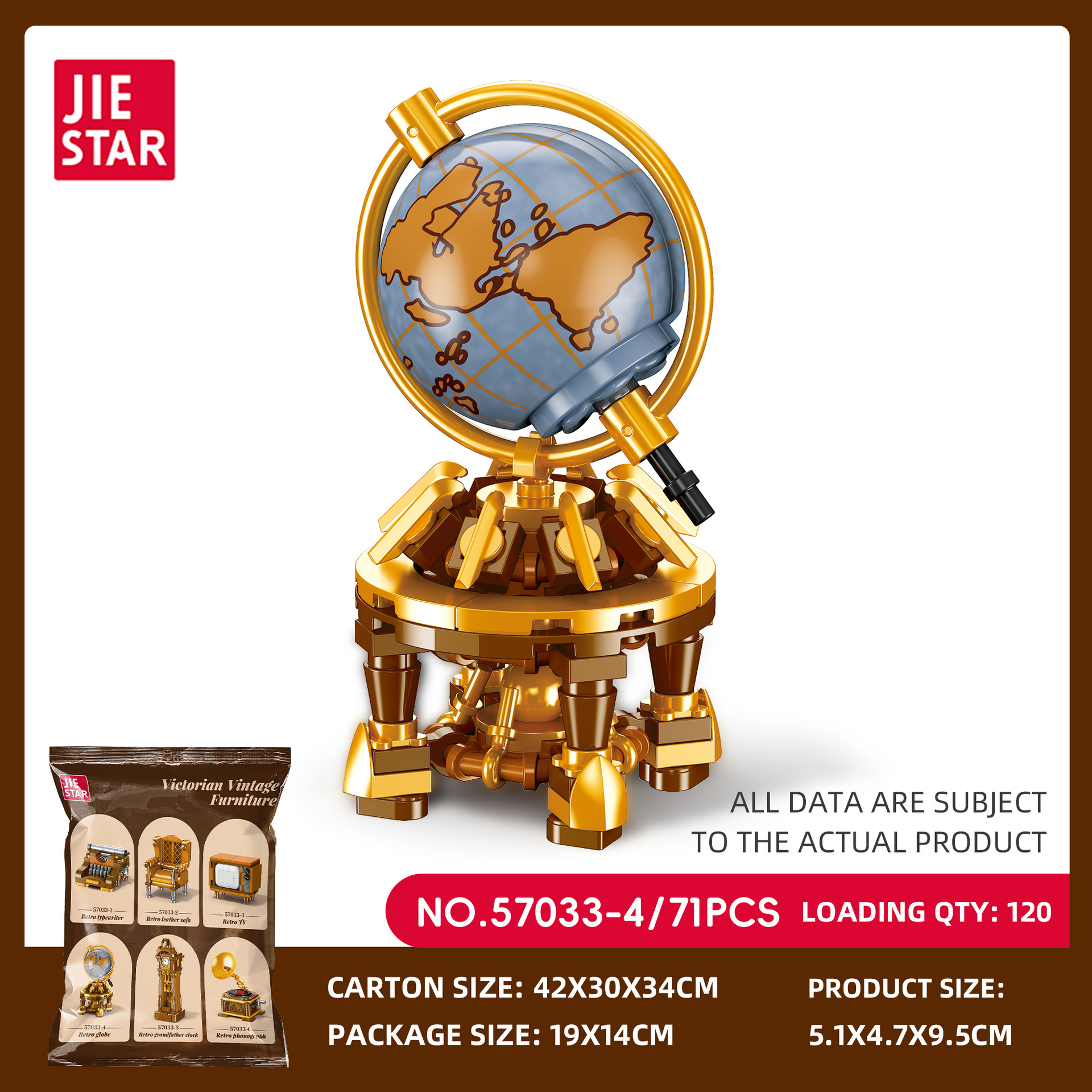 杰星57033-4 復古家具創意系列 地球儀 益智拼裝積木