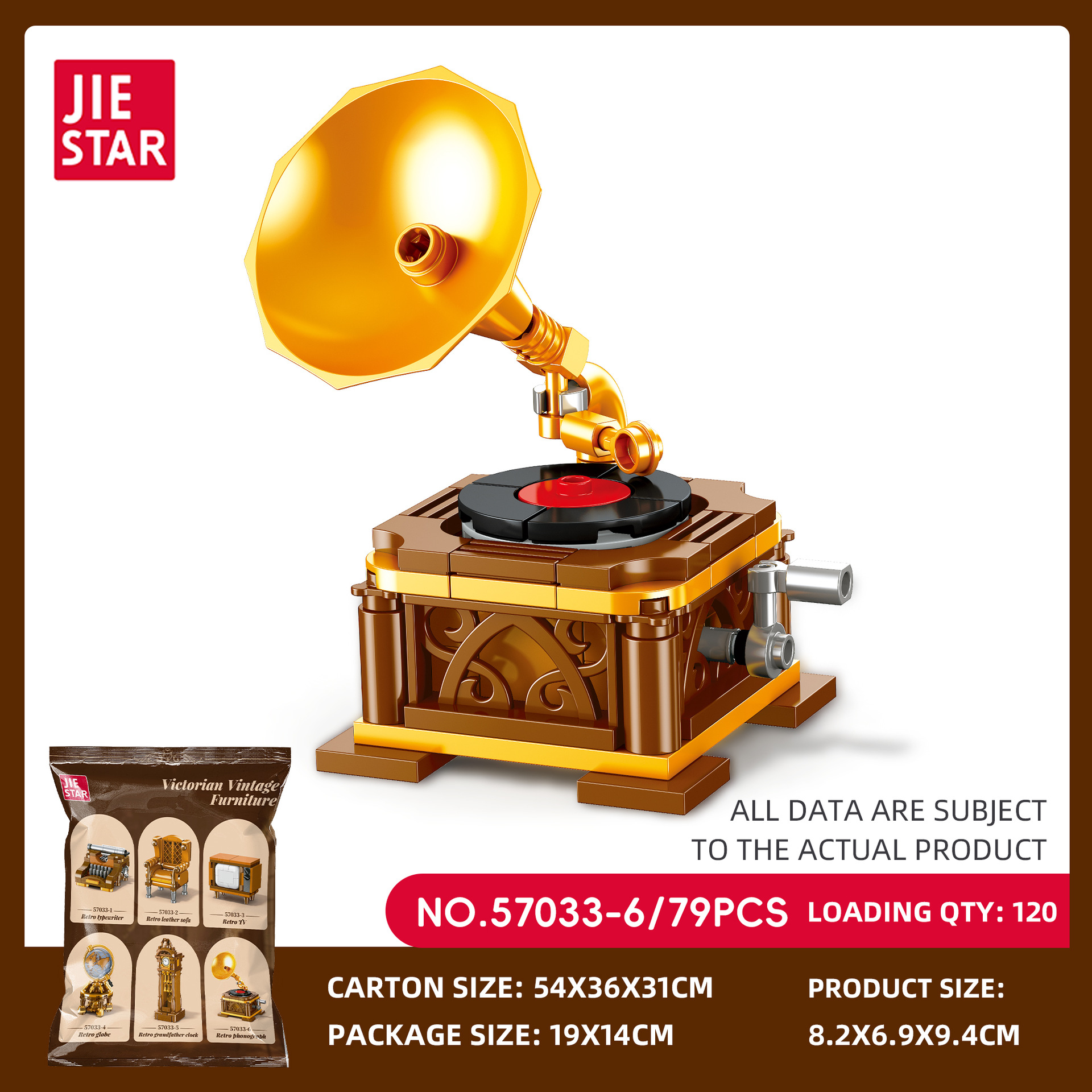 杰星57033-6 復古家具創意系列 留聲機 益智拼裝積木