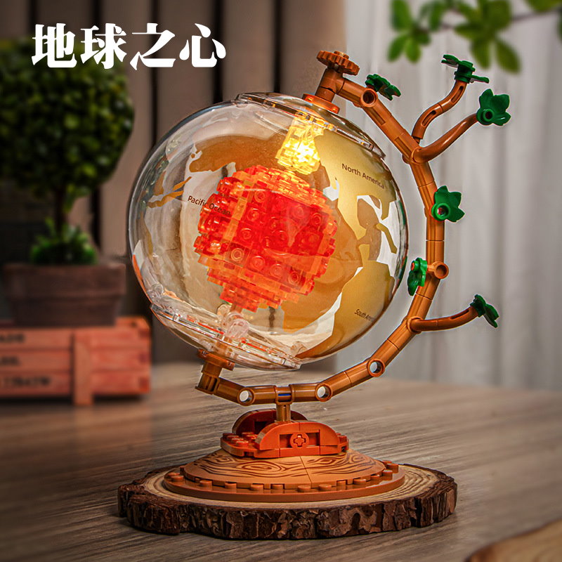 P8067 創意系列 地球儀 地球之心 附燈光 禮品 禮物 益智拼裝積木